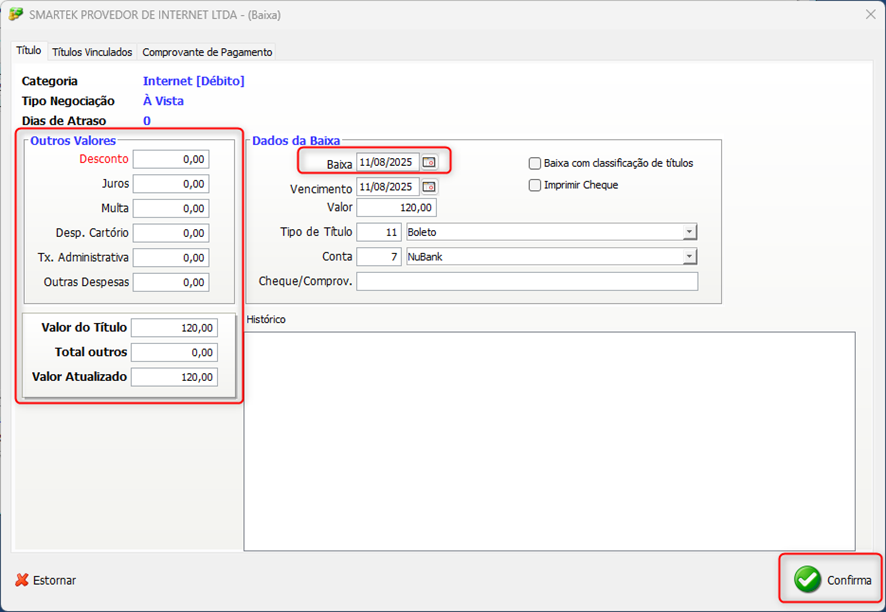 d. Informe o Valor da Baixa.